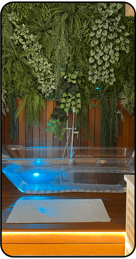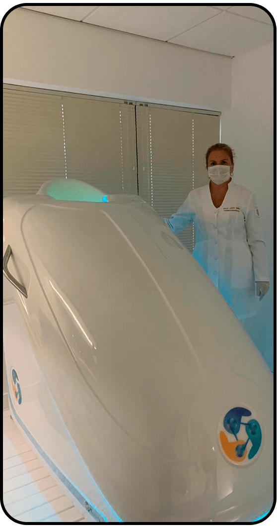 Sauna, Ozônio, Cromoterapia, Infra-vermelho longo pulsante e Aromaterapia. É muito procurado por atletas, pois age em dores, edemas e outros fatores físicos.